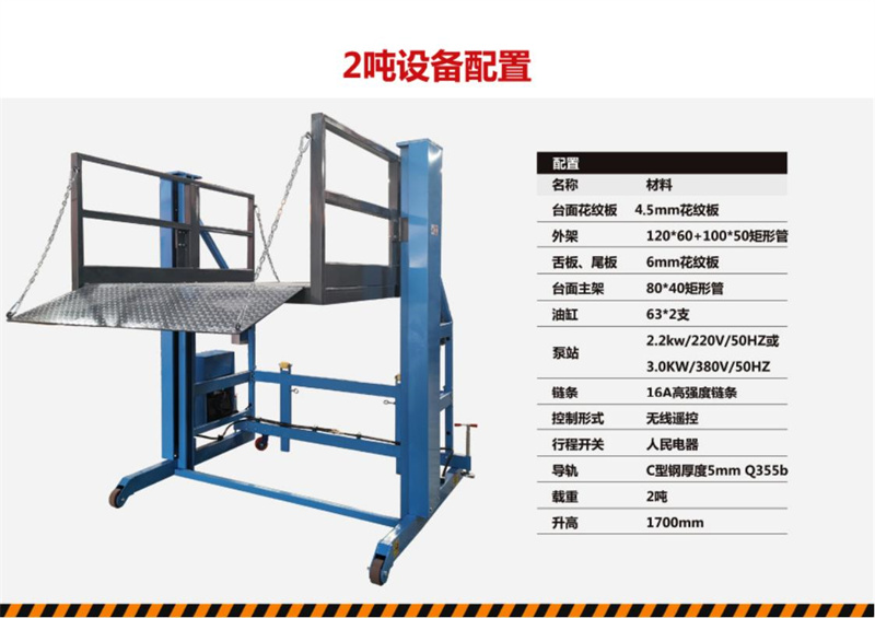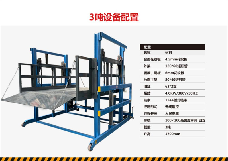4.卸貨平臺底架下設(shè)有緩沖 橡膠墊,在平臺下降到地面時起到緩沖作用減小沖擊;